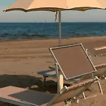 На пляже отеля Corallo есть кресла для отдыха и зонтики.